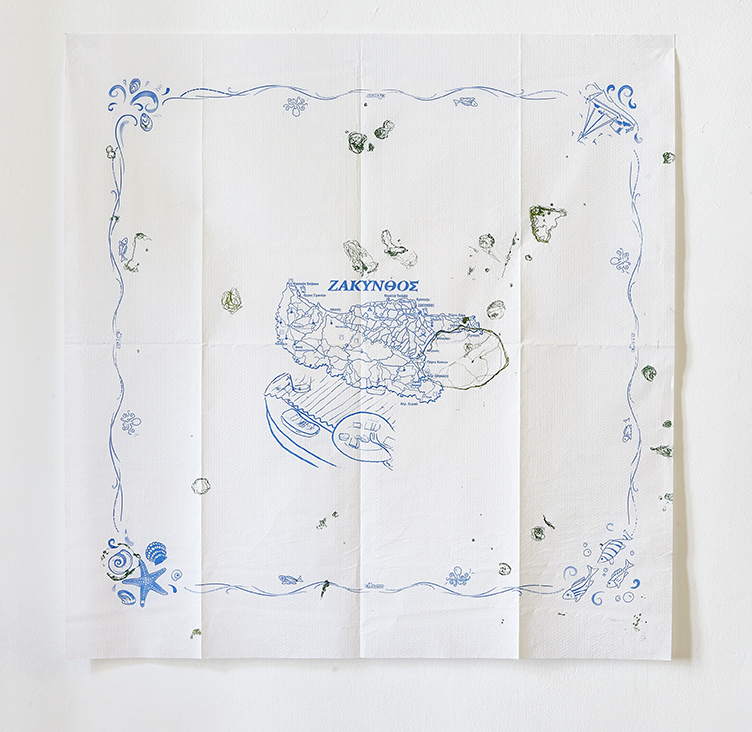 Nur das Tischtuch und die Spuren, die sie darauf hinterlassen hat.