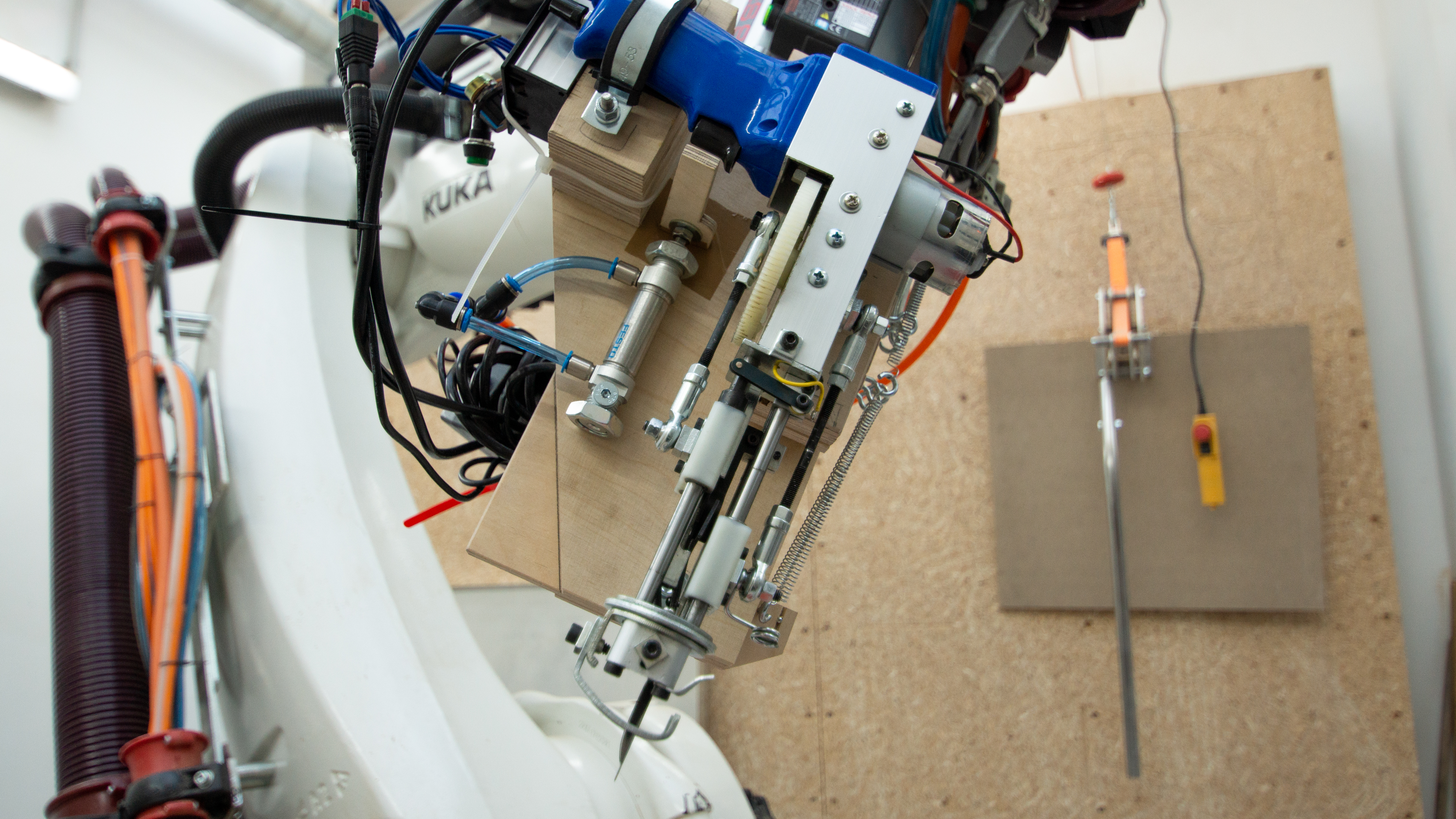 Das Diplomprojekt "3D Roboter Tufting" ist eine Materialforschung und die Entwicklung einer neuartigen Produktionsmethode. Die Vision war dreidimensionale textile Oberflächen direkt auf dreidimensionalen Objekten mit Hilfe eines 6 Achs Roboters zu erzeugen. Diese Produktionsmethode könnte neuartige Inspiration für die Möbelindustrie darstellen, speziell im Bereich der Polstermöbel und Akustikabsorber. Für den Tuftprozess wurde ein Handmaschine umgebaut und auf die Spindel des 6-Achs Roboters moniert. Eine große Herausforderung war, die einzelnen Faktoren wie beispielsweise den idealen Anpressdruck oder die richtige Geschwindigkeit und Orientierung des Roboter zu finden um optimale Oberflächenergebnisse zu erzielen.